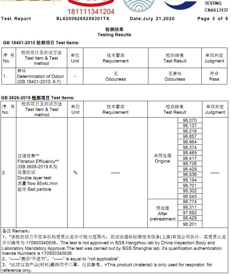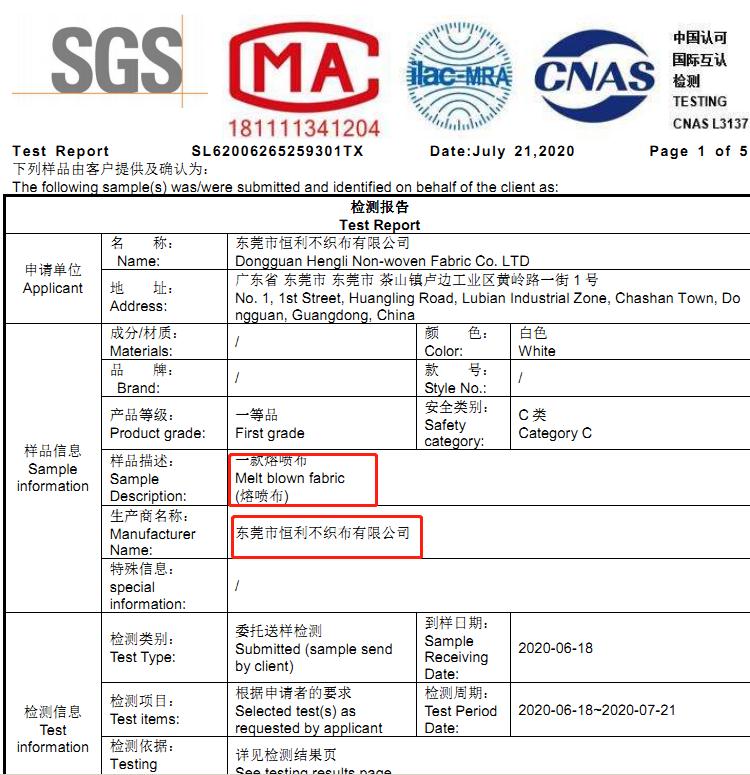 熔噴布95+SGS檢測(cè)報(bào)告