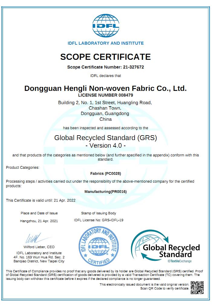 GRS認(rèn)證無紡布(可掃二維碼查詢)